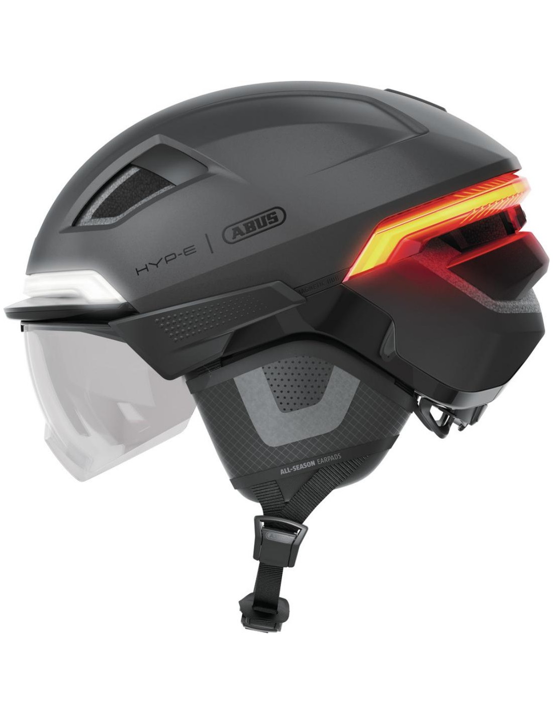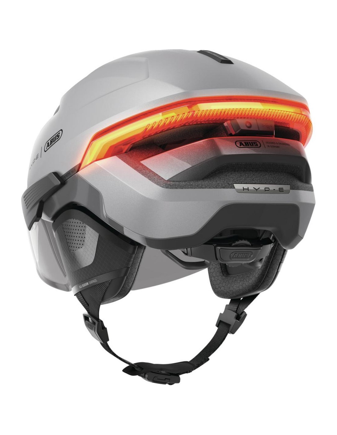 Grazie alla moderna tecnologia di illuminazione con telecomando intuitivo, non solo sei più visibile, ma puoi anche comunicare chiaramente le tue intenzioni, come svoltare, frenare o cambiare corsia. Il sistema di illuminazione, che comprende luce posteriore, luce anteriore, luce del freno e indicatori di direzione, aumenta sensibilmente la tua presenza nel traffico, in modo che tu possa muoverti in modo sicuro e rilassato. Le luci sono integrate nel design a guscio multiplo dell'HYP-E e ne sottolineano l'aspetto e la sensazione premium.