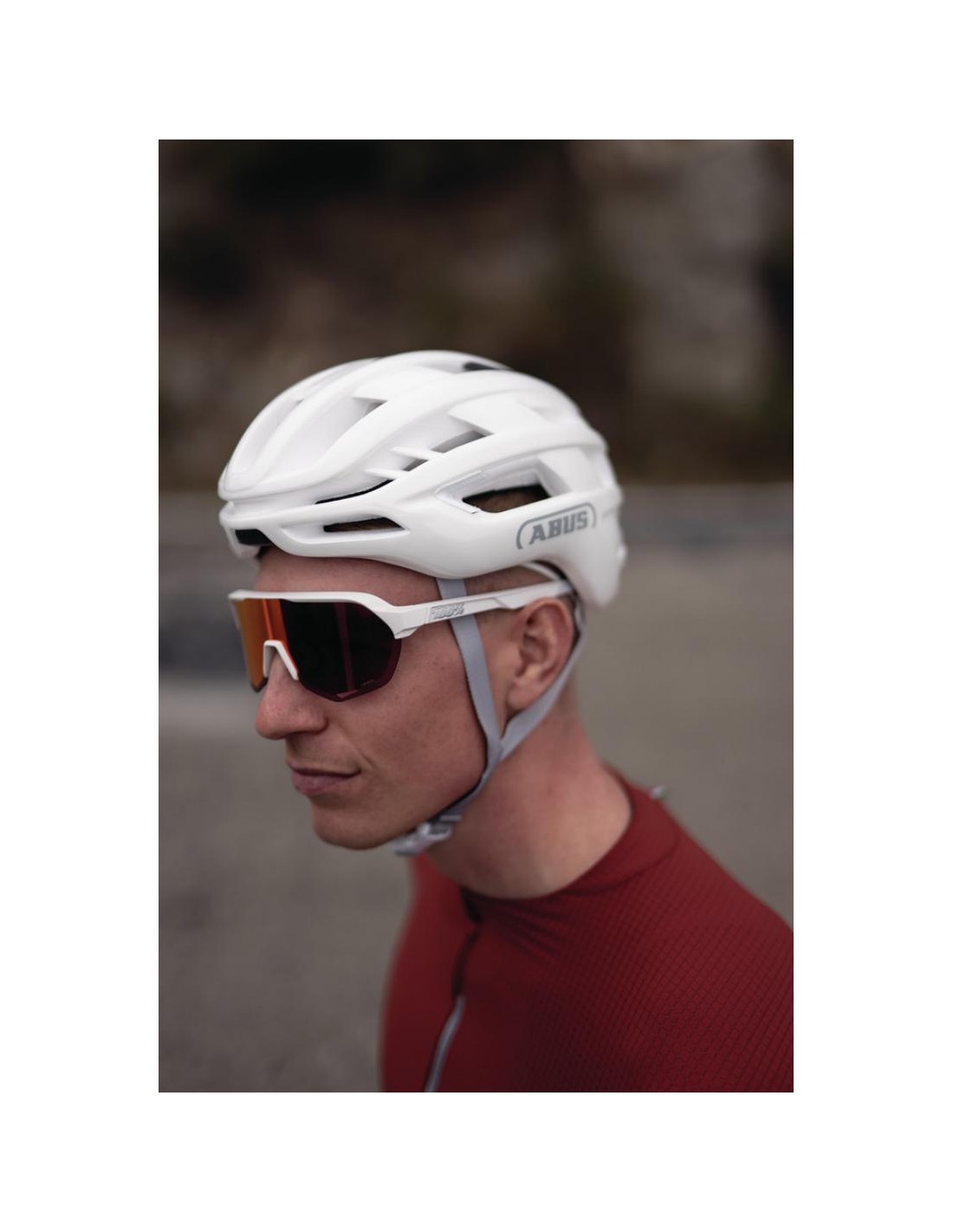Grazie alle grandi aperture d'aria strategicamente posizionate e al sistema di flusso d'aria refrigerante ottimizzato, la testa rimane piacevolmente fresca anche durante le gare più frenetiche, sia in uno sprint sia nelle lunghe e lente salite. Anche quando indossi gli occhiali da sole, puoi sentire la ventilazione completa e rinfrescante.
